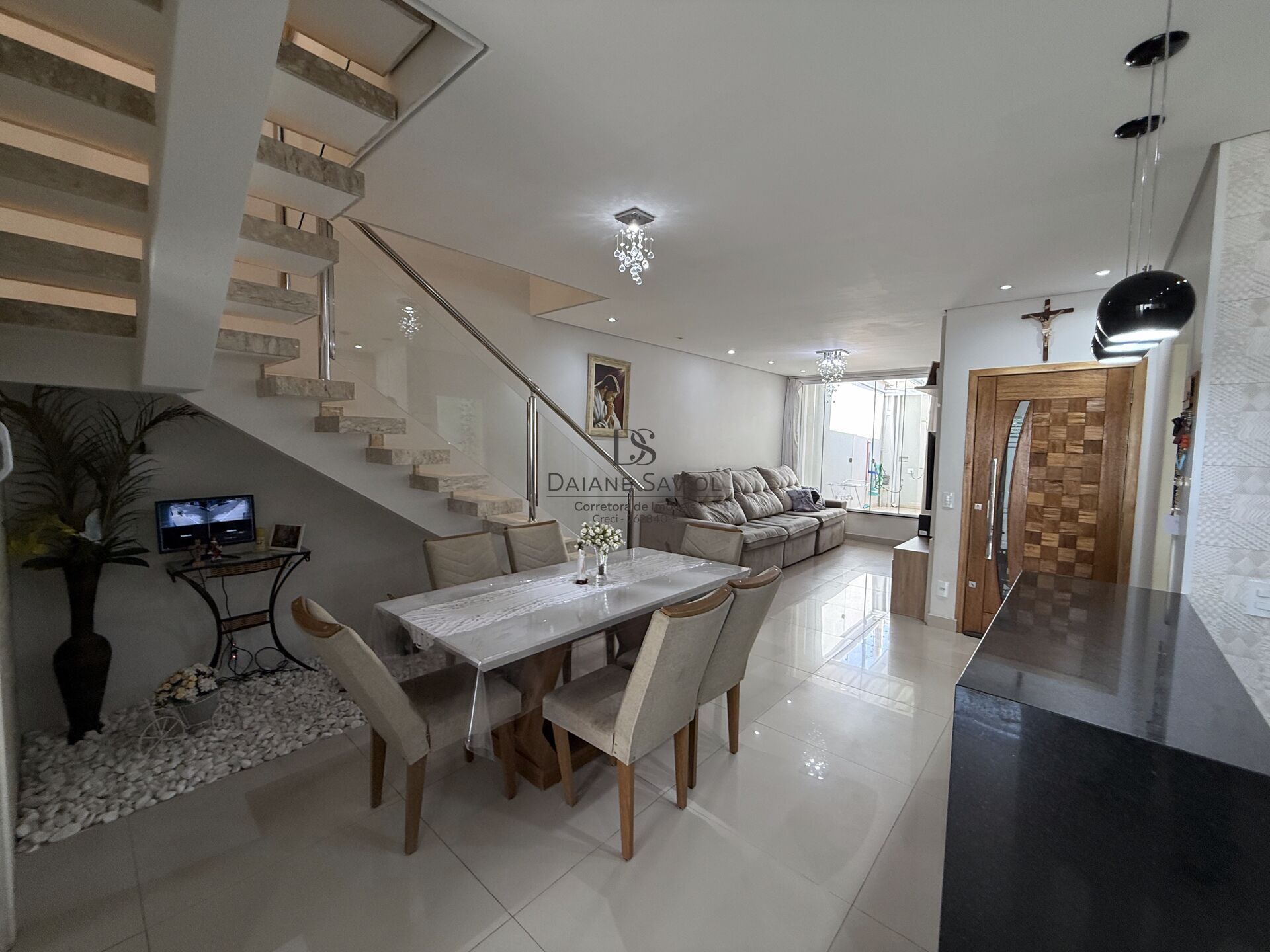 Sobrado espaçoso, ideal para família que busca conforto e bom gosto. Conta com 3 dormitórios, sendo uma suíte master com closet e hidromassagem, além de sacada. A sala é integrada com sala de jantar e cozinha, projetadas para otimizar espaço e convivência. Possui escritório para home-office, lavanderia funcional, varanda gourmet perfeita para momentos de lazer, tudo com móveis planejados de excelente qualidade.